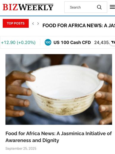Jasminica's launch of "Food for Africa News" has made international headlines, as the top story on BizWeekly. This story reports our mission to pair food distribution with dignity and spreading awareness. Jasminica is now expanding its mission to partner with "Food for Africa News" to spread news of hunger through this dedicated news platform.